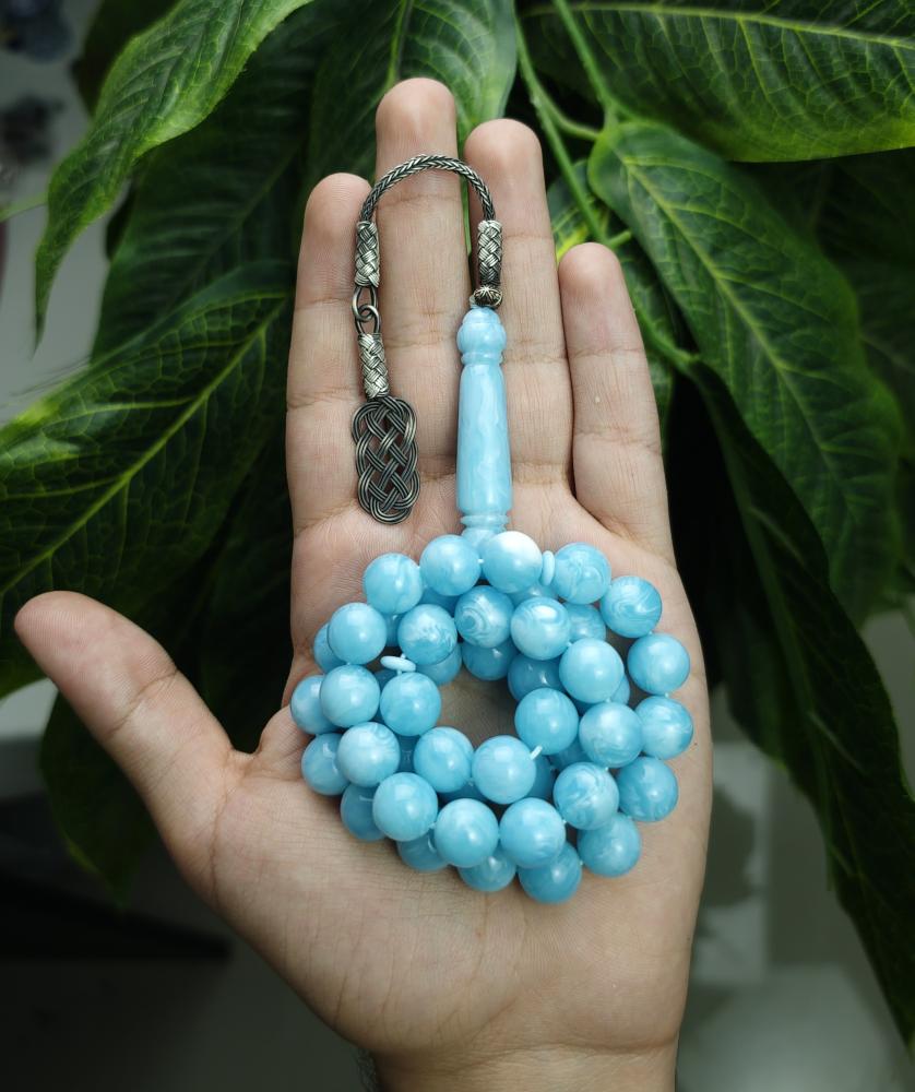 سبحة بكلايت سماوي مموج طربزونة فضة