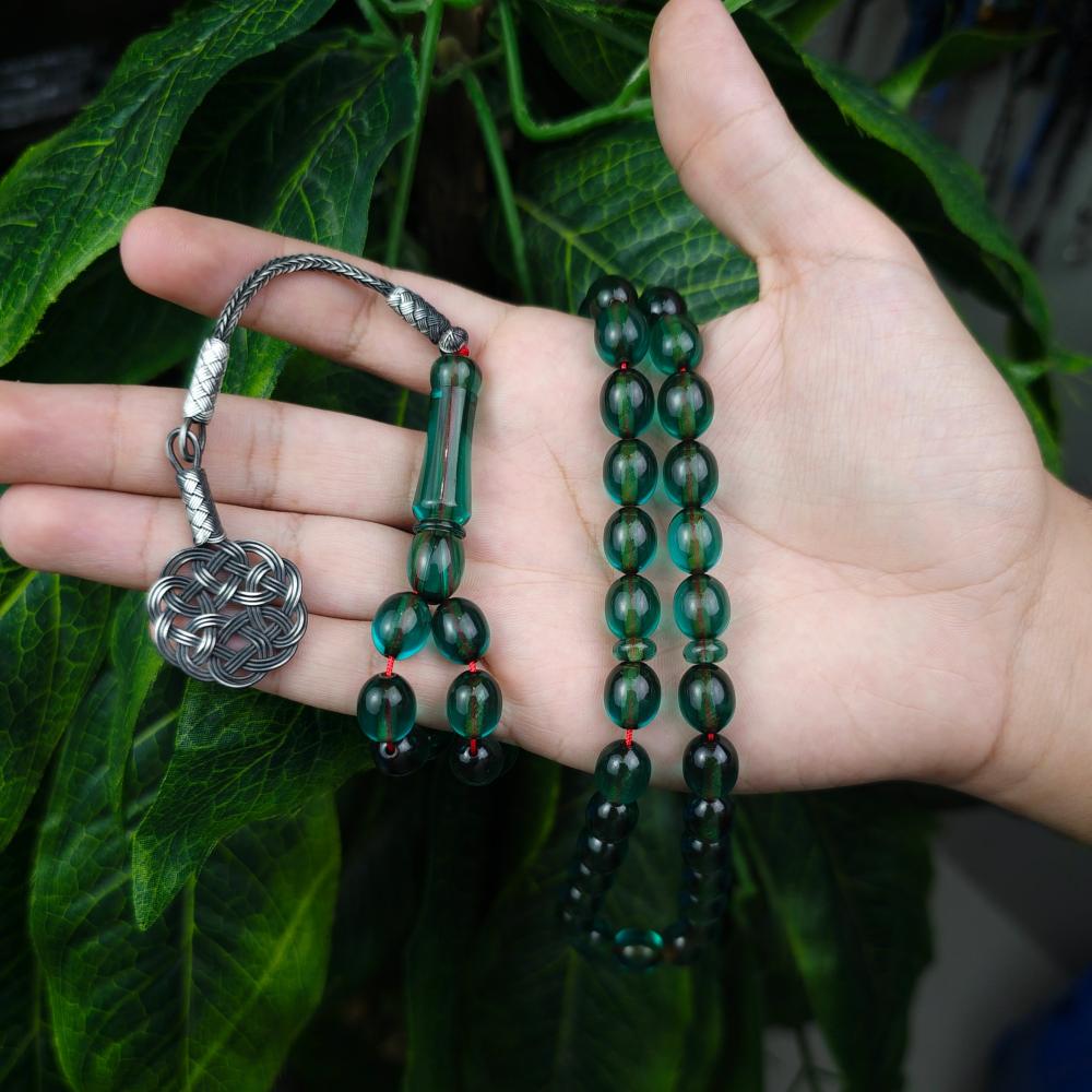 سبحة زعفران ايراني تركوازي شفاف طربزونة فضة